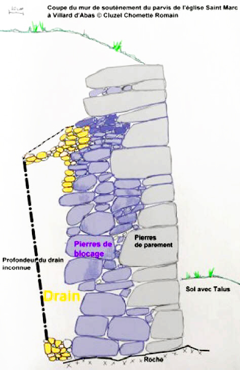 Résumé Cet article présente la restauration du mur en pierre sèche soutenant le parvis de l’église Saint-Marc, à Villard d’Abas, en Ubaye (Alpes-de-Haute-Provence, France). L'ouvrage, partiellement effondré, assurait la stabilité du parvis et l’intégration de l’église dans le paysage.