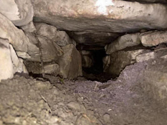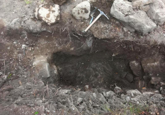 This excavation also uncovered an underground dry-stone conduit, likely intended for water drainage. Its construction, using flagstones laid as lintels to support the floor, demonstrates expertise and attention to moisture management on the site.