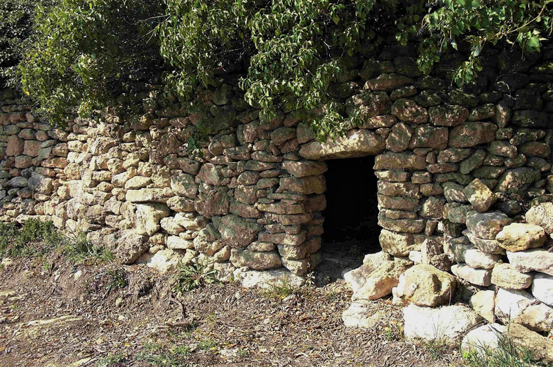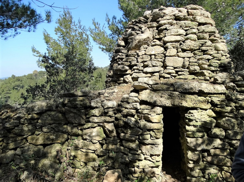 Architecture et morphologie Les cabanes sont majoritairement de dimensions très moyennes voire petites. Elles affichent une grande diversité de volumes et de plans intérieurs et extérieurs. Bien que des formes quadrangulaires voire plus complexes aient été observées (carrée, rectangulaire, trapézoïdale, polygonale), la forme circulaire ou dérivée du cercle est la plus fréquente (ovoïde, fer à cheval, elliptique). Édifiés sur les massifs collinaires, ces édifices sont : - parfois de simples guérites intégrées dans un mur de soutènement (fig. 3),