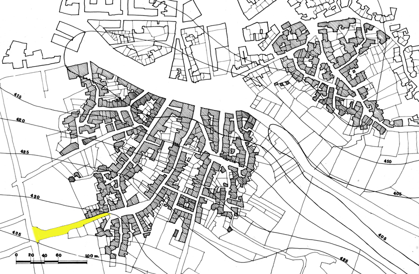 un mur borde des jardinets du côté opposé à celui des habitations. Deux moyens