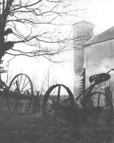 grange corrézienne dans les années 1970, une photo noir et blanc d'une échauguette