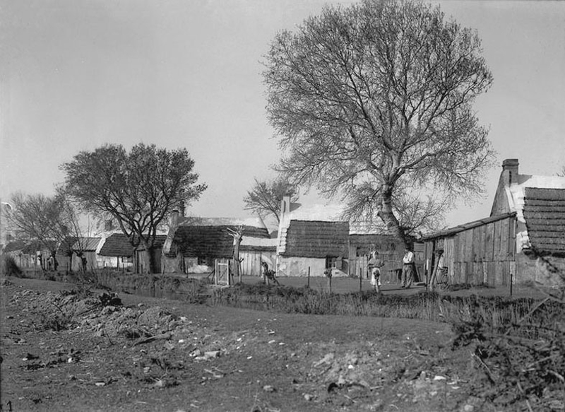 Ainsi qu'on l'a vu, les dessins et tableaux faits par Van Gogh lors de son séjour chez les Saintois en 1888, attestent la présence de quelques cabanes mais surtout de maisons basses, les unes et les autres à couverture de sagne, à la périphérie du village de l'époque. Cette présence se prolonge jusqu'aux années 1900, mais non sans une attrition importante, comme le montrent les cartes postales anciennes.