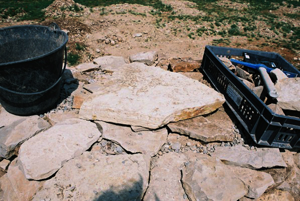couvrement, la collerette de dalles sablières a été posée sur l’arase du corps