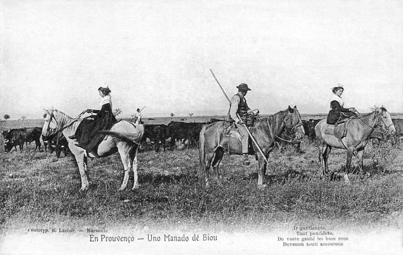 Le déclin de la céréaliculture provençale et surtout l’arrivée des batteuses à vapeur, à la fin du XIXe siècle, devait libérer les chevaux pour d'autres activités, essentiellement celles liées aux manades de taureaux ou bioù (bœufs castrés).