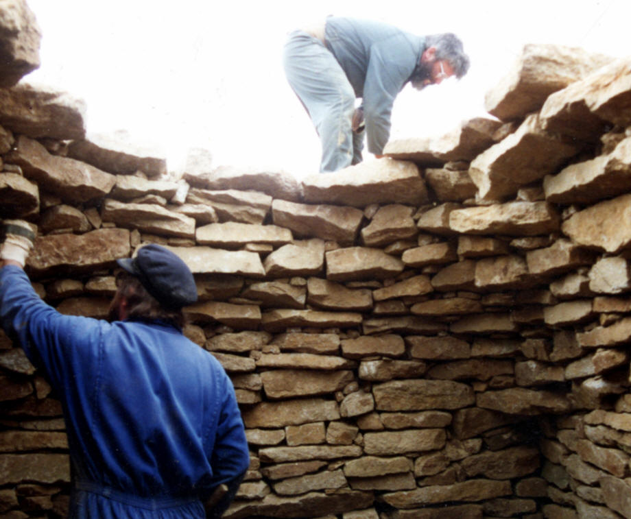 3 - La «capitelle » de Jean-Marie Barre dans la région de Lunel (Hérault) Sans fondations solides et parfaitement stables, la cabane de pierre sèche la mieux construite ne peut espérer tenir debout très longtemps. C'est sans doute ce que pensait, en 2004, le peintre Jean-Marie Barre lorsqu'il dota son « cabanon pointu » de Lunel d'un anneau de fondation profond de 0,80 m et large de 1,50 m et y coula du béton sur chacun des lits de grosses pierres emboîtées remplissant la fouille. La solution du béton cyclopéen ne peut manquer de heurter le puriste mais des compromis sont parfois nécessaires pour parvenir à ses fins. Le compte rendu de cette expérience est consultable sur le présent site.