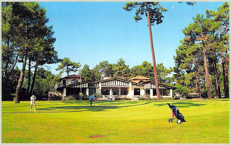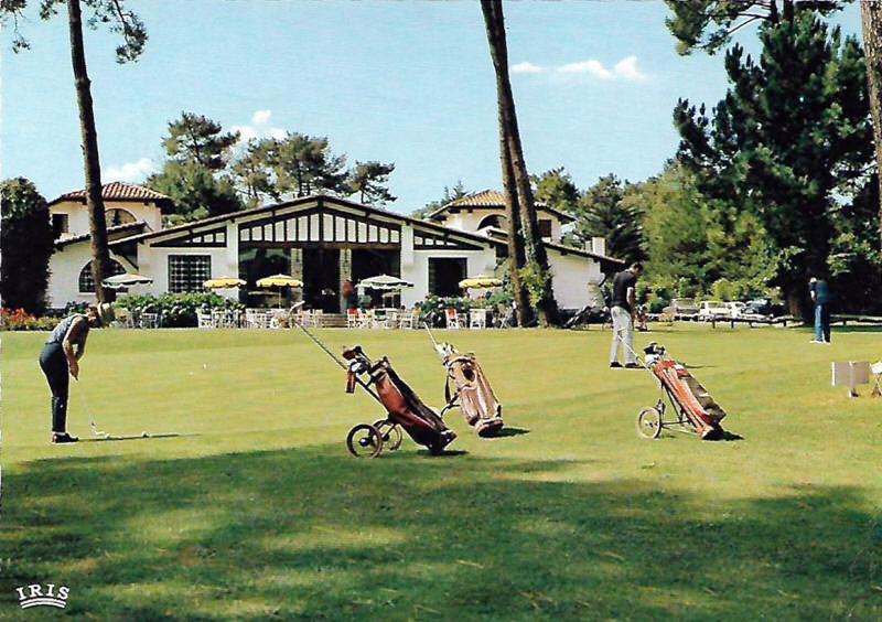 Carte postale photographique des années 1950 (bords denticulés) éditée par Combier imprimerie Maco (Cim). Sur la face écrite, en haut à gauche : « SOUSTONS (Lande) ― Le Pavillon Landais » ; entre les deux moitiés : « PHOTO COMBIER MACON (S.- ET- L.) » ; en bas au centre : « PHOTOGRAPHIE VÉRITABLE ».