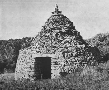 Bonjour mesdames et messieurs. Je dirige depuis une vingtaine d'années une Association française, le « Centre d’études et de recherches sur l’architecture vernaculaire », domiciliée à Paris et se consacrant à l’étude des architectures vernaculaires, dont l’architecture de pierre sèche. L'activité principale de notre Association est la publication d'une revue annuelle, « L’Architecture vernaculaire », et l’organisation de journées d’étude. Première diapo : Aux temps héroïques de notre Association, en 1977, le premier volume de notre Revue; elle s’appelait alors « L'Architecture rurale en pierre sèche »; depuis, nous continuons à publier au rythme d’un volume par an. (diapo non reproduite) Diapo 2 : Le volume publié en 1989. (diapo non reproduite) Diapo 3 : Le dernier volume publié, celui de 1997, consacré au thème de la construction et de la restauration à pierre sèche et reprenant tous les articles publiés depuis 20 ans sur ce thème précis dans notre Revue. (diapo non reproduite) Diapo 4 : En plus de cette publication annuelle, nous avons divers suppléments consacrés à un thème ou à une région particuliers. Voici un des derniers suppléments parus, qui traite d’édifices en pierre sèche se trouvant dans l’arrière-pays d’El-Jadida au Maroc, les « tazotas » et les « toufris ». (diapo non reproduite) Diapo 5 : Une autre publication, qui est la bibliographie de tout ce qui a été écrit sur l’architecture de pierre sèche en France depuis le milieu du XIXe siècle. Les premières études sur l'architecture de pierre sèche en France remontent en effet à 1860; elles continuent actuellement, au rythme de plusieurs dizaines de titres chaque année. (diapo non reproduite) Diapo 6 : Dans le cadre de la réalisation de « L’encyclopédie de l'architecture vernaculaire dans le monde » du professeur Oliver de l’université d’Oxford, notre Association a été chargée de la partie France. Nous avons rédigé la rubrique générale France, ainsi que diverses rubriques régionales : il s'agissait en fait d'architecture vernaculaire et non pas seulement d’architecture de pierre sèche, mais nous avons rédigé plusieurs rubriques consacrées à la pierre sèche. Mon exposé n’a d’autre but que de montrer et de décrire différents types de couvrement rencontrés sur des édifices en pierre sèche en France. Par « couvrement », il faut entendre la structure supérieure de ces édifices. Cette structure est double, comprenant intérieurement la voûte, le voûtement, et extérieurement le revêtement, la couverture, la toiture. On parle également de double « peau », la « peau » intérieure et la « peau » extérieure. La France est un pays riche en constructions de pierre sèche, peut-être moins que l'Italie, mais présentant une très grande varieté de procédés constructifs et de formes. Diapo 7 : Nous allons tout d’abord examiner des édifices de plan rectiligne. Nous sommes ici dans ce qu'on appelle la région des Petites Pyrénées, c'est-à-dire aux confins du département de la Haute-Garonne et de l'Espagne. Cet abri, qui est situé à l'entrée d'un champ, est intéressant parce qu’il révèle en façade la structure même de la construction. Le principe fondamental est celui de l'encorbellement des pierres, conjugué au principe de leur inclinaison ou pendage vers l’extérieur; sans cette inclinaison, la voûte ne serait pas stable. Autre point capital : les pierres sont placées avec leur longueur dans l'épaisseur de la maçonnerie, ou autrement dit avec le plus petit côté visible dans le parement; et non la partie la plus longue. On a ici deux demi-voûtes autonomes qui se rejoignent au sommet mais ne se contrebutent pas. Elles pourraient très bien être séparées l'une de l'autre en haut par un petit intervalle, par exemple un plafond de dalles, mais cela n’ajouterait pas grand chose à la stabilité de l’ensemble. Diapo 8 : Nous passons dans une région qui s'appelle le haut Quercy. Nous avons à faire à un édifice ruiné qui se trouve englobé dans un énorme tas d'épierrement. L'intérêt de cette photo, prise depuis le dessus de l’épierrement, c'est de nous montrer la technique de construction sur plan rectangulaire : on y retrouve la façon dont les pierres sont disposées en encorbellement ainsi que leur pendage prononcé vers l'extérieur de l’édifice. De même, on voit très bien que les pierres sont placées « en boutisse », c'est-à-dire avec leur plus grande dimension dans le sens de l'épaisseur de la maçonnerie, et leur plus petit côté en parement. Diapo 9 : La même construction, vue depuis l'intérieur. Diapo 10 : Nous passons maintenant aux édifices de plan circulaire. Sur le plan circulaire, les choses se compliquent un peu. Le présent édifice est une chibotte« du Velay, une région du Massif Central. Ayant été découronnée par quelque récupérateur de pierre, elle permet de se rendre compte de la structure interne d’une cabane à base cylindrique et à couvrement conique non débordant. On a tout d'abord, à l’intérieur, sur un plan concentrique, des assises de pierres trapézoïdales encorbellées et inclinées vers l'extérieur, avec le plus petit côté en parement. À l'extérieur on a, par contre, des assises de pierres triangulaires, avec le plus grand côté en parement. Ce qu'il faut bien comprendre, c'est que les pierres de chaque assise extérieure posent sur le bout des pierres de chaque assise intérieure du niveau immédiatement inférieur. Il y a de ce fait imbrication verticale des assises. Diapo 11 : Nous passons dans une région qui s'appelle le Périgord. Ayant trouvé cette photo d’une cabane censée avoir été « restaurée », j'étais très intrigué par son couvrement en forme de cône en retrait par rapport à la base cylindrique : il faut dire qu’en Périgord les couvrements en forme de cône sont toujours débo